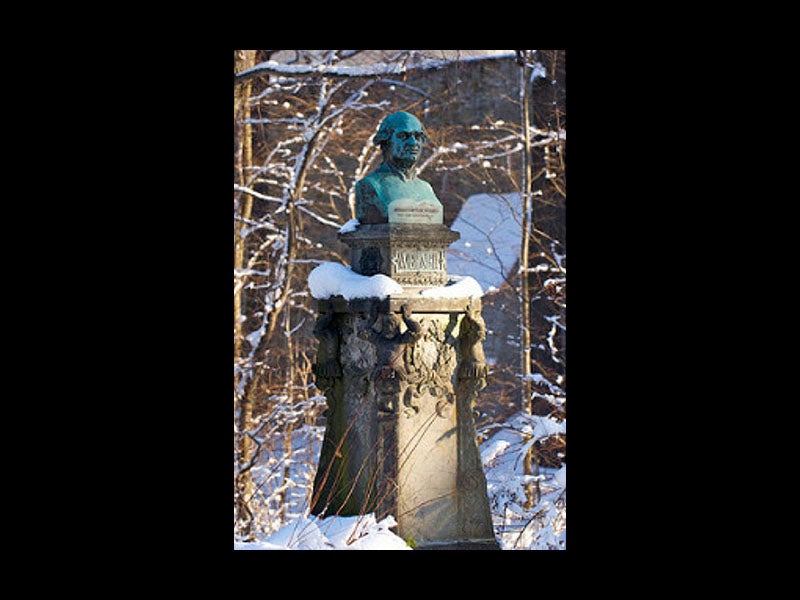 There is a commemorative bust of Werner in a park in Freiberg (second image), and a nice portrait somewhere in the same city (third image). The portrait most often reproduced appeared in one of his books (fourth image), and makes him look goofy, but Werner was far from being a goofball. He and Linnaeus were the two most popular teachers in all of Europe in the 18th century, so he was clearly a master at pedagogy, and he really did know his minerals inside and out. Had he lived in Scotland, or Italy, he probably would have reached quite different conclusions about the origins of crystalline rocks such as basalt.