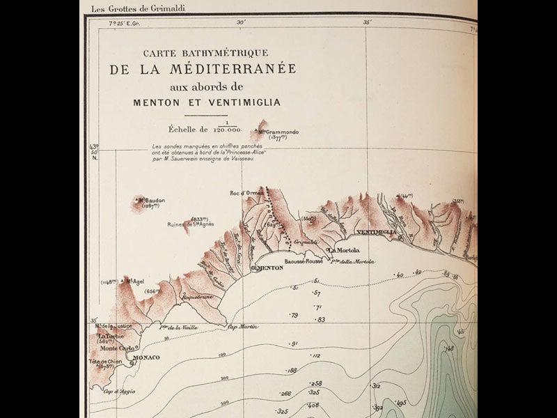 Prince Albert I published a book on the caves and their contents, Les Grottes de Grimaldi (1906-19), which we have in our collections and which is the source for images 2-4 above. Grimaldi man is now considered to be a variant of, and contemporary with, Cro-Magnon man. Albert I was the great grandfather of Prince Rainier III, who married Grace Kelley; the two of them produced a less contentious Grimaldi man, the current Prince of Monaco, Albert II.