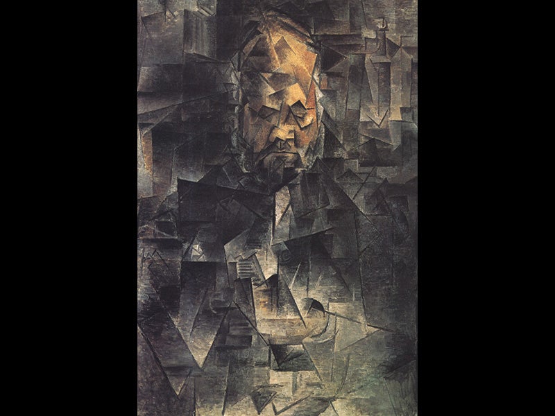 Ambroise Vollard, a French art dealer, was born July 3, 1866. Vollard was a great patron of French impressionism, post-impressionism, and cubism, supporting such artists as Cezanne, Renoir, Rouault, and Van Gogh. Consequently, he had his portrait painted by some of his grateful clients; above we can see Cezanne’s portrait (first image) and that of Renoir (second image). But it is the portrait executed by Pablo Picasso in 1910 that is so interesting to historians of science (third image; the portrait is in the Pushkin State Museum of Fine Arts in Moscow). It used to be thought that the multi-faceted Vollard portrayed by Picasso was inspired by Einstein’s relativity theory and the idea of time as a fourth dimension. But we now know that Einstein had no effect whatsoever on modern art before 1920; what Picasso’s Vollard is reflecting is more likely contemporary artistic interest in the possibility of a fourth spatial dimension, such as that made popular in E.A. Abbott’s Flatland of 1884, where two-dimensional creatures are confronted with the possibility of a three-dimensional world (fourth image). Picasso’s Vollard is seemingly an attempt to imagine what a four-dimensional human might look like in three-dimensional space. It would have been even better if Picasso had painted 10 Vollard portraits, all different, for Abbott advised us that the appearance of a four-dimensional creature would change continually, depending on what “slice” is currently intersecting our three-dimensional world.