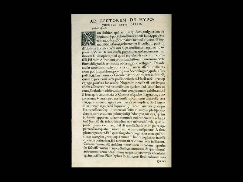 Andreas Osiander, a German Lutheran theologian, was born Dec. 19, 1498. In 1542, Georg Joachim Rheticus was seeing Copernicus' great book, De revolutionibus orbius coelestium (On the Revolutions of the Heavenly Orbs, 1543) through the press in Nuremberg, when he got a call to a new post in Leipzig. He asked Osiander to take over the final editorial duties, and Osiander agreed. He then took it upon himself to write a short "To the Reader" to appear before the text of Copernicus’ book. In his contribution, called “On Hypotheses,” Osiander made the point that astronomers necessarily use hypotheses in constructing planetary models, but these hypotheses need not be true, or even probable, to be useful. The implication was that Copernicus did not believe in the heliocentric hypothesis that is at the core of his book. Osiander's view on hypotheses was in fact that standard position in astronomy before Copernicus; few mathematical astronomers believed in the reality of epicycles and deferents, but they were happy to use them to calculate planetary positions.