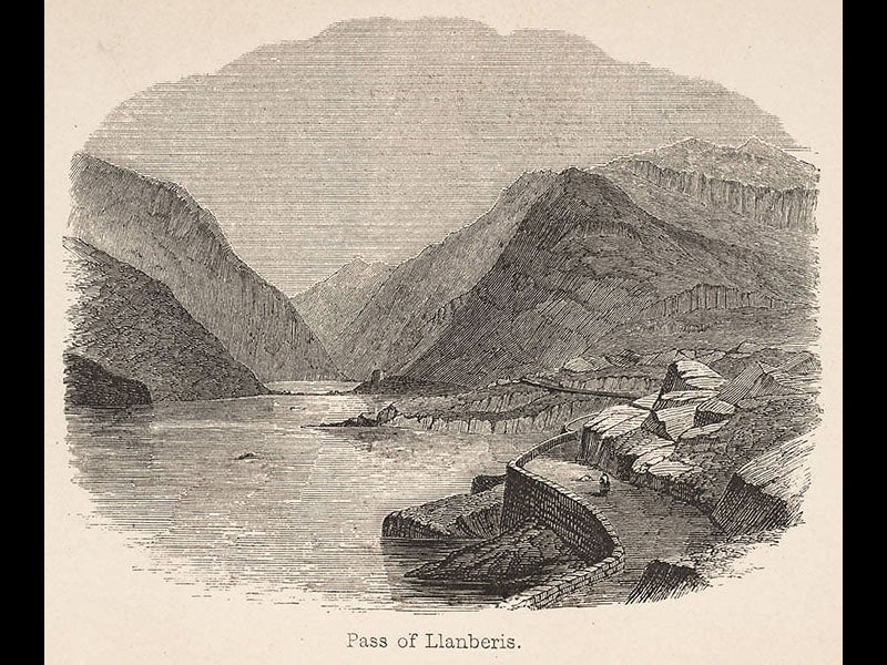 Ramsay also included two illustrations showing the pass of Llanberis, an ancient glacial pathway in Wales, first as it appears today (third image), and second, as it must have looked when it was filled by a glacier (fourth image). We included both images in our 2008 exhibition, Ice, a Victorian Romance.