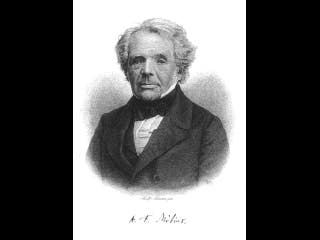 August Möbius (Moebius), a German mathematician, was born Nov. 17, 1790 (see fourth image above for a portrait). In 1858, when he was nearly 70 years old, Möbius invented the most innocent looking and devilishly deceiving piece of paper in history, the Möbius strip. Cut a one-inch wide length from a piece of copy paper and tape the two ends together to make a ring, but be sure to give the strip a half-twist before you fasten the tape. The result is a topological oddity, a surface that has only one side and one edge. Put an ant on a Moebius strip (as Maurits Escher did in a well-known 1963 woodcut, here charmingly animated), and the ant will circle the strip forever, crawling on what appears to be both sides, without ever crossing an edge. Should you cut a Möbius strip down the middle with a scissors, you get not two strips, but one strip that is twice as long as before, with three twists.