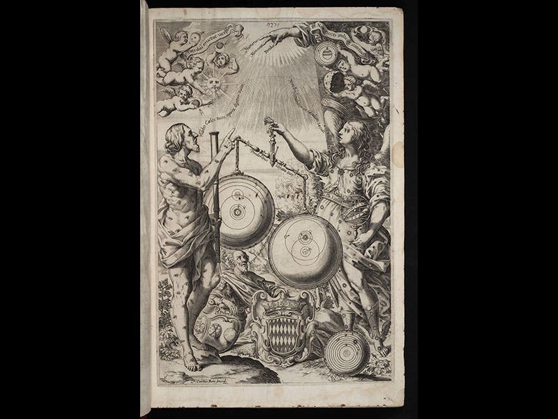 Riccioli’s Almagestum novum also has a splendid engraved title page (sixth image), rich in cosmological emblematic imagery, which we will dive into on a future occasion.