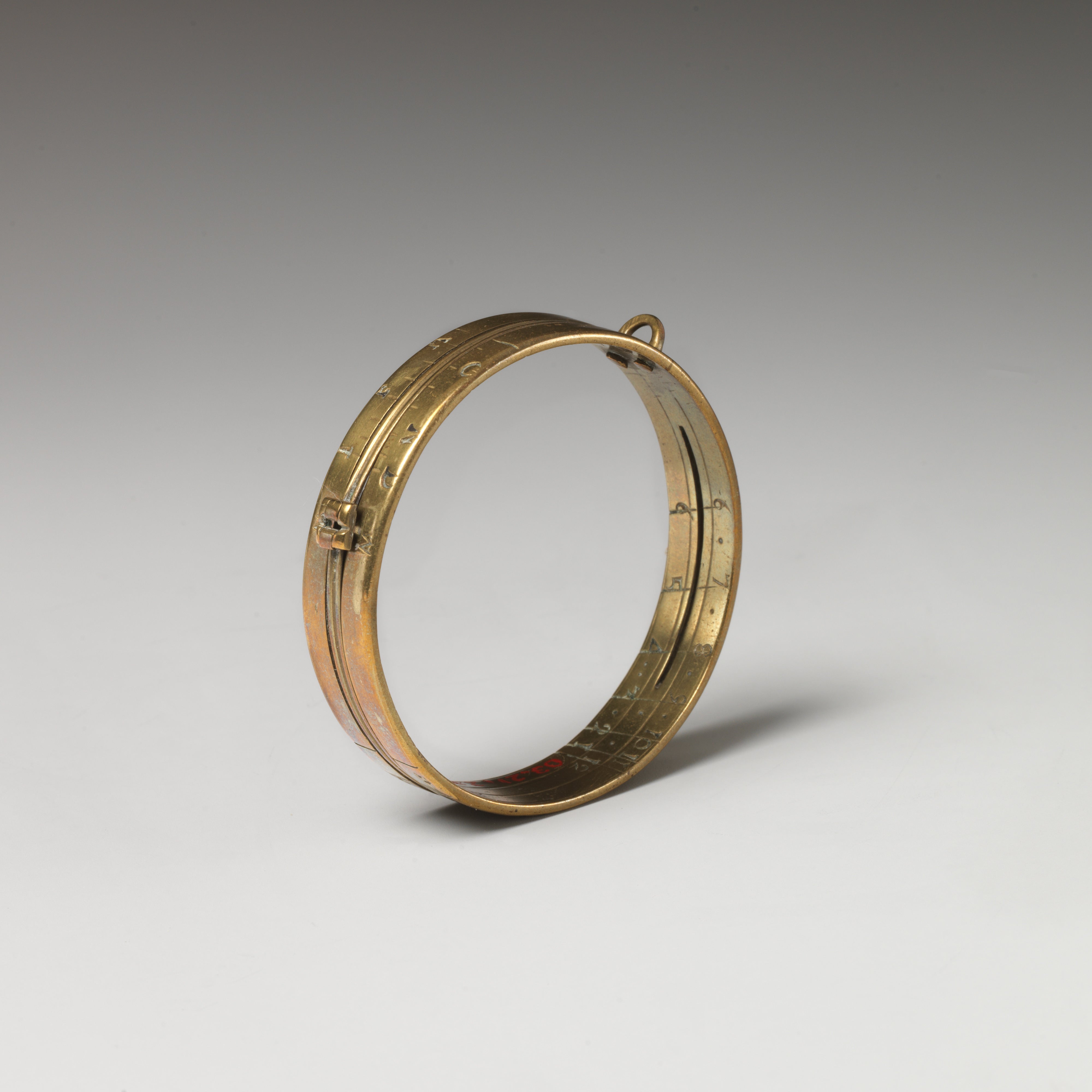 One example was the “ring dial,” which once removed from the finger, could tell the exact hour of the day. The sliding piece on the outside of the ring must first be lined up with the corresponding month. A dial is engraved inside the ring and, by holding it up towards the Sun, the light can shine through a tiny hole in the ring, marking the hour on the face inside the ring.