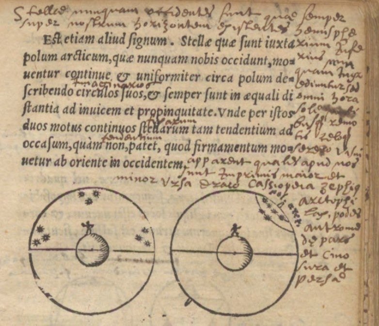Stellae quae sunt iuxta polum arcticum, quae nunquam nobis occidunt, moventur continue et uniformiter circa polum describendo circulos suos, et semper sunt in aequali di stantia ad inuicem et propinquitate.