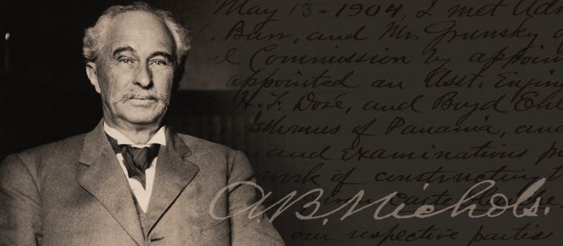After the U.S. formally took possession of the Panama Canal on May 4, 1904, A.B. Nichols was one of the first employees to arrive in Panama and one of the few who stayed throughout the Canal project. At the time, Nichols was 59 years old, making him one of the oldest employees on the project.